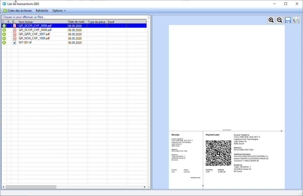 En appuyant sur le bouton [Obtenir une transaction GED] tous les documents disponibles (spécifiques au client) sont chargés depuis la GED.