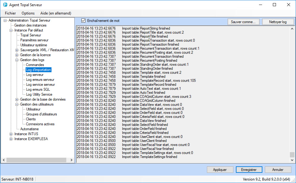 Figure 1 : Topal Server Agent - Protocole log d’importation
