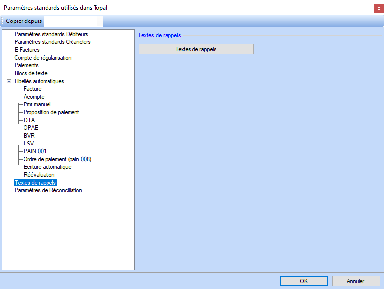 Si des rappels sont générés pour des niveaux de rappel ou des langues dans lesquelles aucun texte de rappel n'est disponible, le programme imprime des pages de rapport vides. Saisissez donc ici tous les textes pour les niveaux de rappel et les langues que vous utilisez dans la pratique. Si vous souhaitez créer des textes de rappel individuels pour certains clients vous pouvez le faire par le biais du réglage de la langue : Créez tout d'abord un nouveau code de langue dans les données de base et saisissez le code de langue depuis la liste "Langue du rappel". Ajoutez ensuite vos textes individuels pour tous les niveaux de rappel. Ces rappels individuels peuvent être attribués aux clients via le nouveau code de langue.