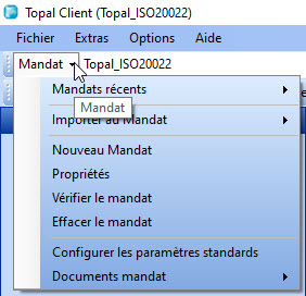 Sous l'élément de menu Mandat, vous pouvez visualiser et modifier des informations détaillées relatives au mandat actuellement ouvert.