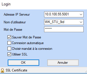 Remarque : si le login est protégé par un certificat SSL, ceux-ci doivent être installés à l'avance.