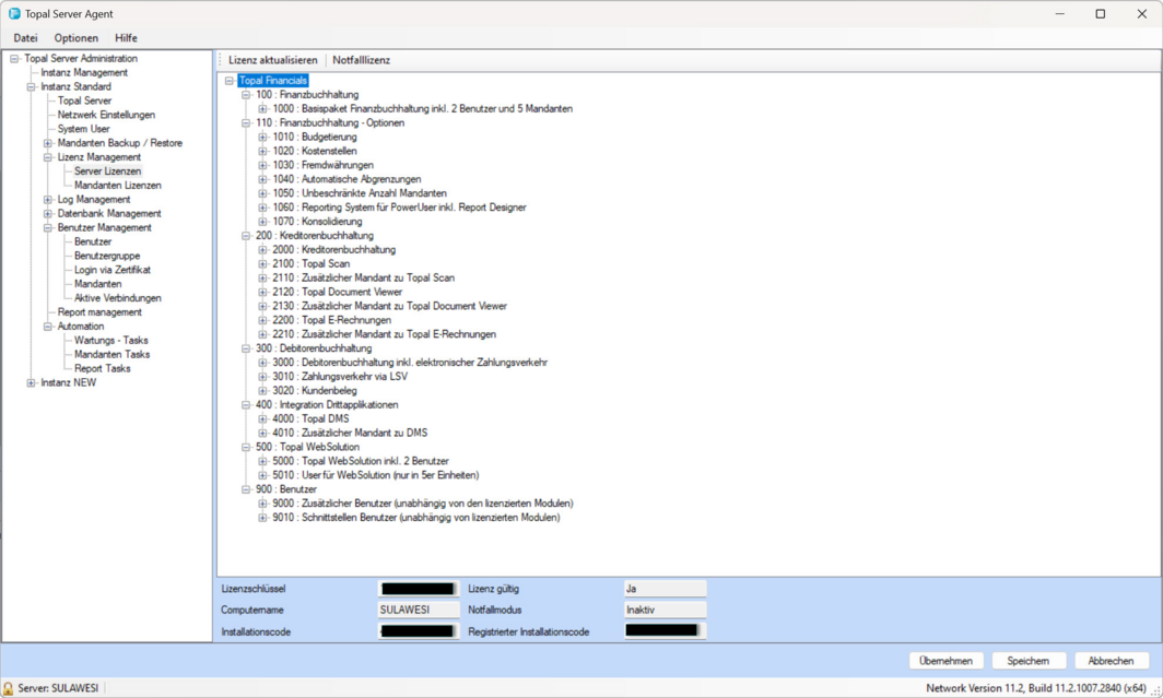 Abbildung 1: Topal Server Agent - Lizenz Management