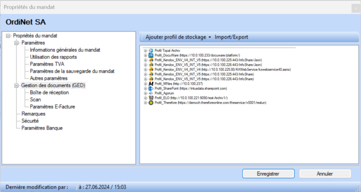 Figure 2: Profil GED - menu contextuel des profils de stockage