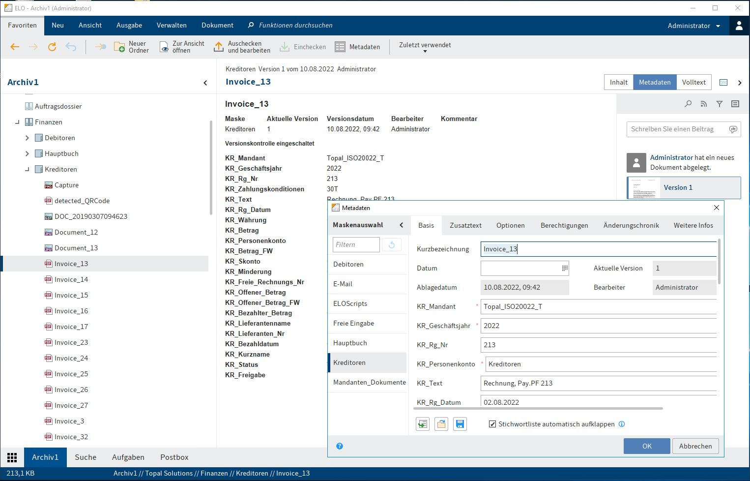 Topal met à disposition une interface pour le classement de documents dans ELO. ELO est conçu pour une utilisation professionnelle dans les entreprises et les institutions qui souhaitent donner une nouvelle base à la gestion des documents, des informations, des dossiers et des processus électroniques. Que ce soit pour la gestion des documents ( GED ) ou dans l'archivage électronique conforme à la législation (avec protection contre les révisions) ou dans les processus basés sur le workflow.
