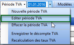 Dans la barre d'en-tête La fenêtre des propriétés des périodes TVA s’ouvre avec la commande [Période TVA > Editer période TVA] (Figure 1).