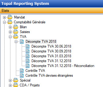 Les états TVA du Topal Reporting System contiennent les évaluations les plus importantes de la TVA :