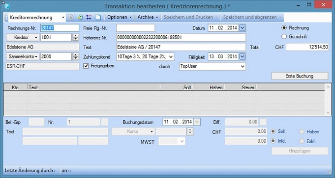 Bei der Funktion Transaktionen erstellen handelt es sich um eine Batchverarbeitung. Beim start dieser Funktion wird Rechnung für Rechnung gescannt und entsprechend der Transaktionsdialog zur