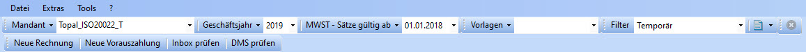 Mit der Aktivierung der Inbox steht Ihnen via Modulnavigation [Kreditoren/Debitoren] oder in der Kopfzeile ein neuer Menüpunkt (Abbildung 1) [DMS prüfen] zur Verfügung: