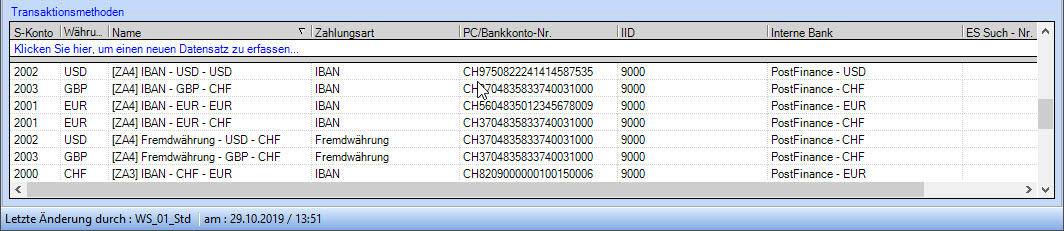 benötigte Aufwandkonto. Von zentraler Bedeutung sind hier die Transaktionsmethoden. Sie enthalten die Zahlungsarten, d.h. mit welchem Einzahlungsschein die