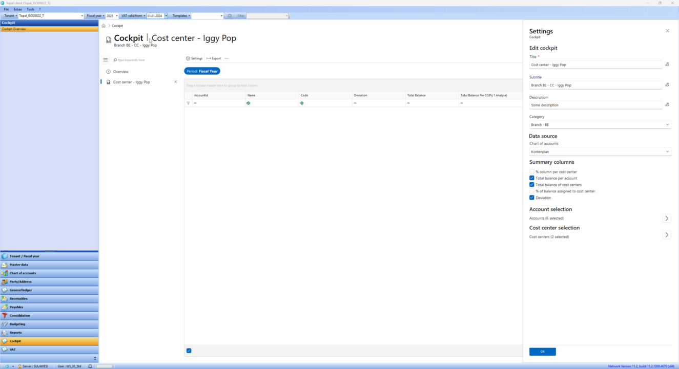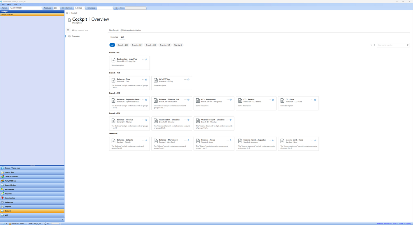 Preview Cockpit Modul Overview Cockpit Typen (Balance, Income statement, Cost center) More Menü Funktionen (Admin, Non Admin)
