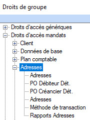 Les droits de groupe du niveau Droits d'accès mandats > Adresses incluent les options de restriction décrites dans le tableau 1.