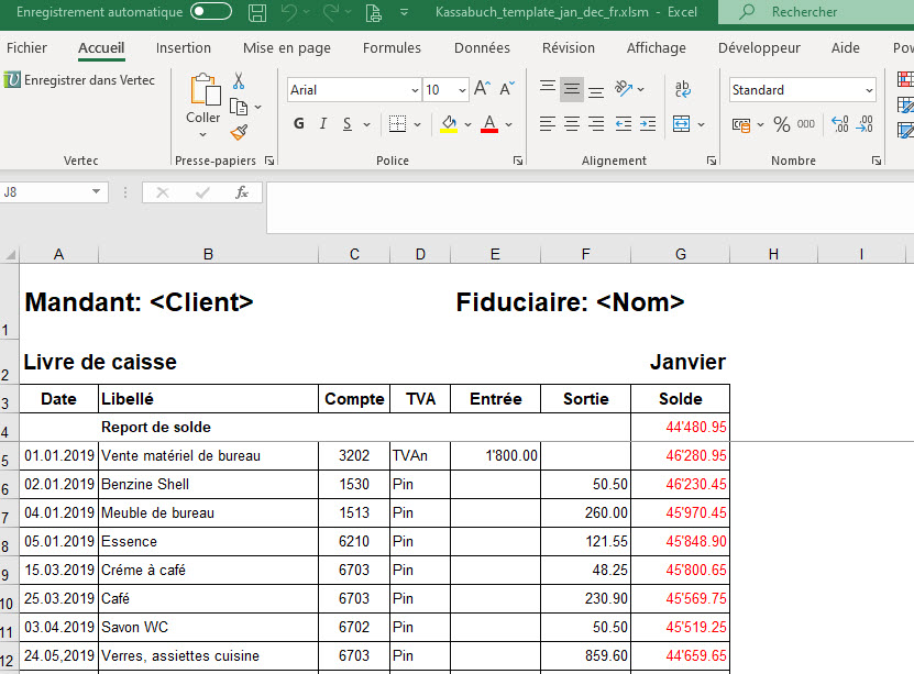 Le modèle de livre de caisse standard est disponible sous le lien de téléchargement suivant : Kassabuch_Template_jan_dec