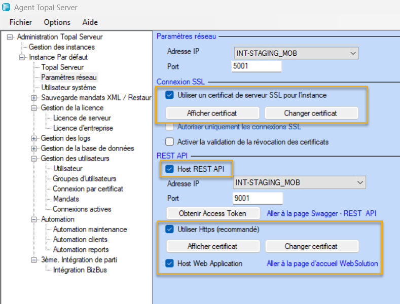 Les configurations suivantes doivent être effectuées dans l'agent serveur Topal.