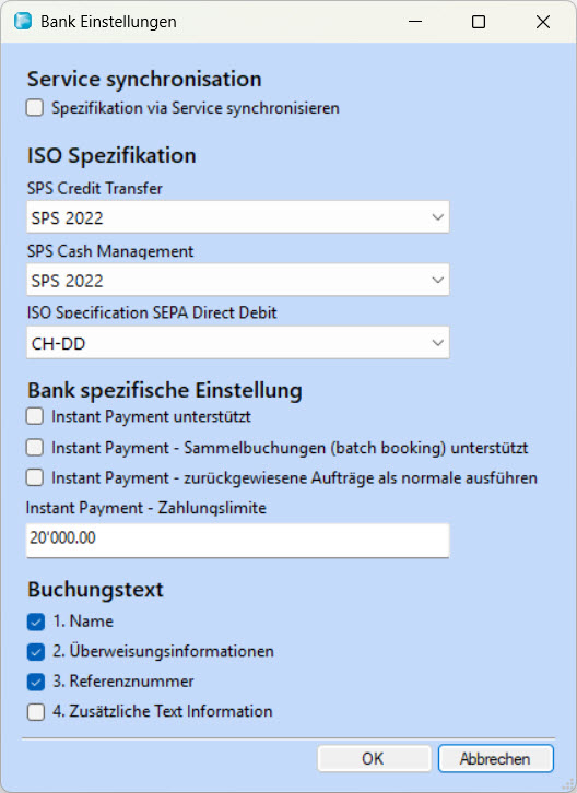 durch die Applikation sicherzustellen. Aus diesem Grund wurde ein zusätzliches Feld in den Bankkonto-Einstellungen hinzugefügt, welches Ihnen erlaubt die SPS (Spezifikation) Instant Payments