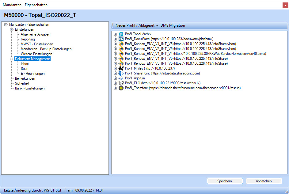 Die Anbindungen an ein Document Management Systeme wird über ein Profil gesteuert. Die Konfiguration des gewünschten Document Management Systems
