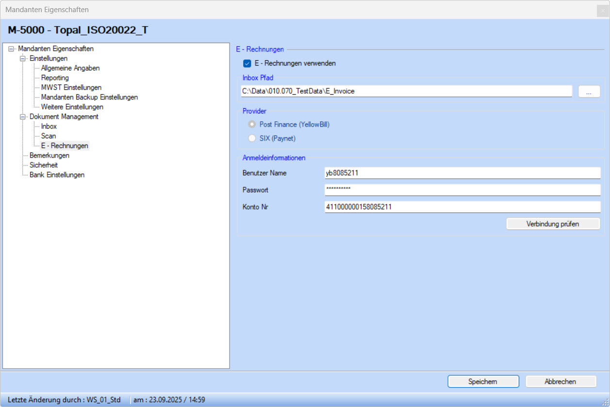 Transaktionen aus E-Rechnungen für diesen Mandanten erstellen, Zugriffsberechtigung auf diesen Ordner haben. Speichern Sie anschliessend diese Einstellungen.