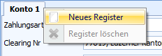 Um weitere Auszahlungskonten zu definieren, können auf rechte Maustasten-Funktion weitere Register hinzugefügt werden: