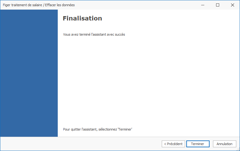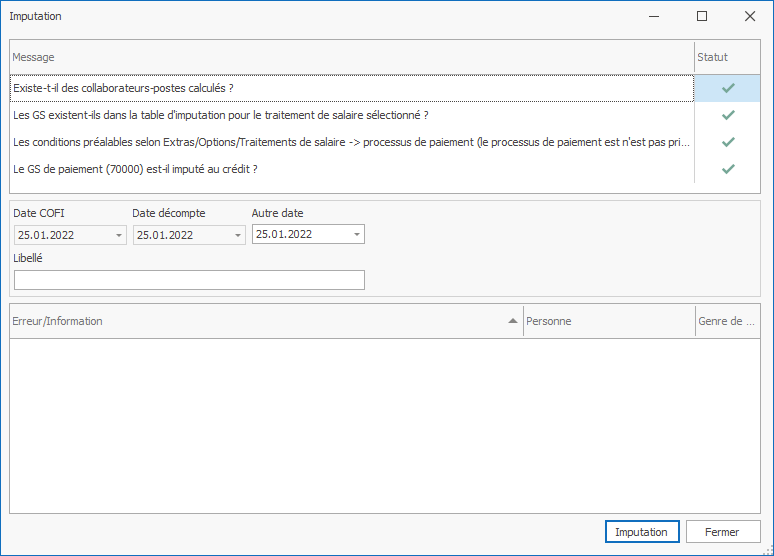 Quittez la fenêtre en cliquant sur le bouton "Fermer". ? À partir de ce moment, les calculs de salaire sont également bloqués. Si vous devez maintenant encore corriger un salaire, vous devez d'abord supprimer l'imputation.