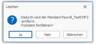 Die Funktion "Löschen" entfernt einen Topal Payroll Mandanten aus der Topal Payroll Administration.