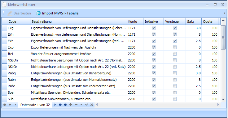 zur Finanzbuchhaltung aktiv, können die MWST-Codes importiert werden.