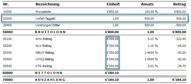 Das Taggeld muss unabhängig davon - bei Erhalt - erfasst werden, um die entsprechenden Sozialbasen und -beiträge zu reduzieren.