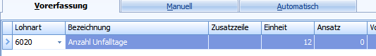 Bei Absenz einer Person werden die Anzahl Tage in der Vorerfassung als Einheit hinzugefügt.