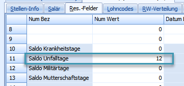Die Absenztage werden beim Fixieren des Lohnlaufs im Stellenstamm in die Reservenfelder geschrieben.