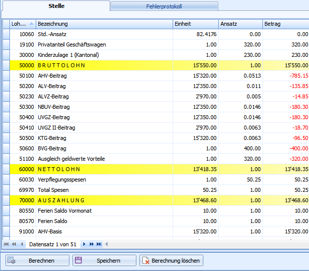 Ist diese korrekt, kann sie gespeichert werden. Bereits gespeicherte Berechnungen können gelöscht und nach den nötigen Änderungen neu berechnet werden.