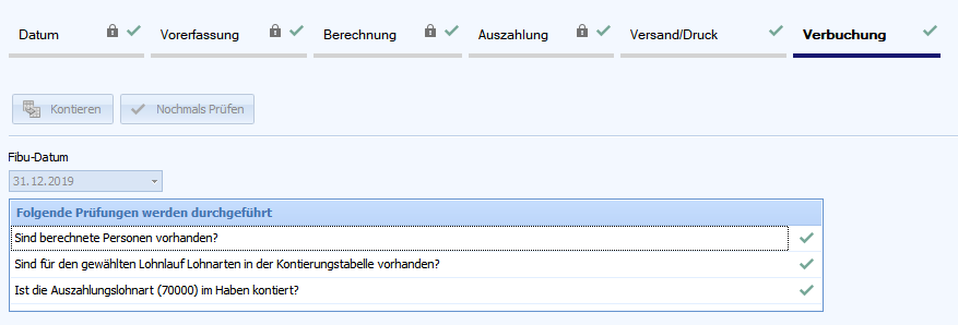 Beim Wechsel in diesen Schritt wird die Kontierung - und falls die Schnittstelle zur Topal Finanzbuchhaltung aktiv ist - die Verbuchung automatisch durchgeführt.