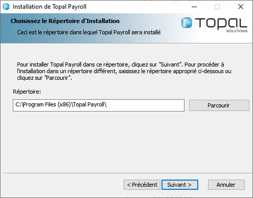 Vous trouverez ci-après une description étape par étape de l'installation de Topal Payroll.