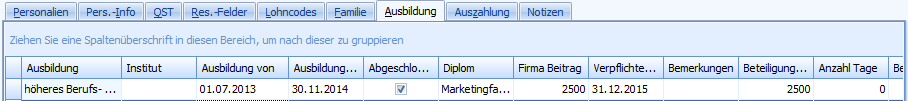 Hier kann die Ausbildungshistory des Mitarbeiters erfasst werden.