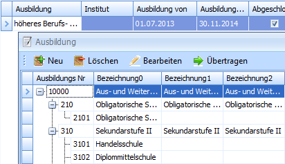 Typ der Ausbildung. Auswahlliste. Diese wird per Doppelklick ins Feld geöffnet und kann beliebig mutiert werden.