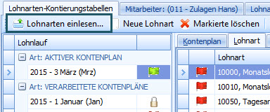 Beim erstmaligen Erstellen einer Kontierungstabelle können sämtliche Lohnarten über das entsprechende Symbol eingelesen werden: