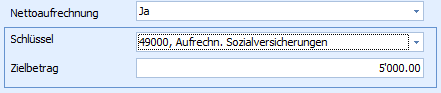 Existiert eine Nettolohnvereinbarung kann hier der Zielbetrag (vereinbarter Nettolohn) sowie die für die Aufrechnung der Sozialversicherung zu verwendende Lohnart definiert werden.
