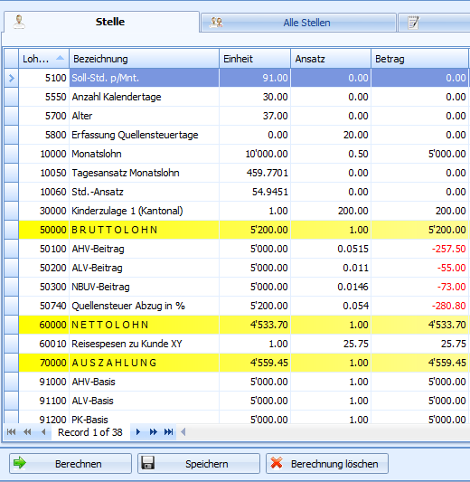 Im Gegensatz zum vorhergehenden Register wird hier die Berechnung direkt gespeichert. Sie kann jedoch auch wieder gelöscht und neu berechnet werden.