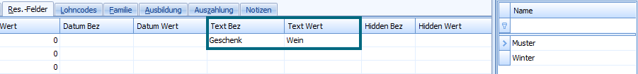 zusätzlichen Feldern
