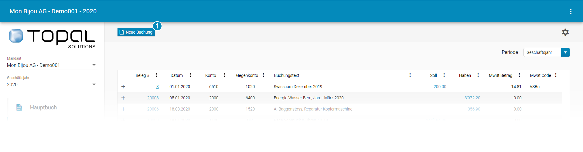 Abbildung 1: Buchungen - Neue Buchung