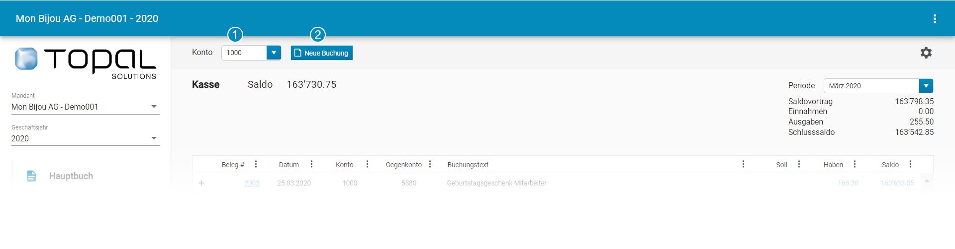 Abbildung 2: Buchungen - Buchungspanel