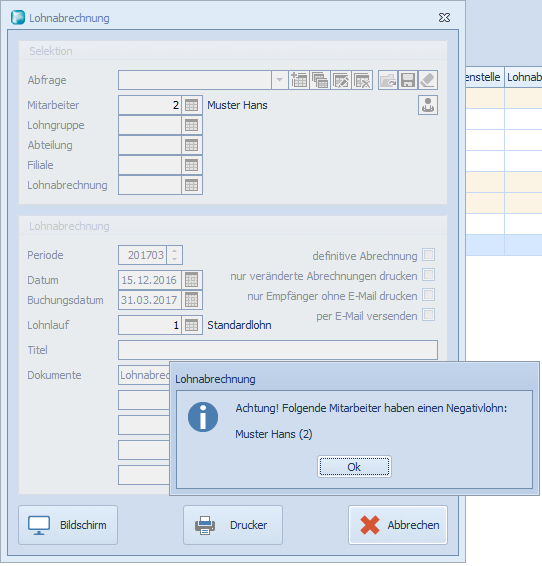 Meldung für Mitarbeiter mit Negativlohn Mitarbeiter mit einem Negativlohn werden bei der Lohnabrechnung gemeldet.