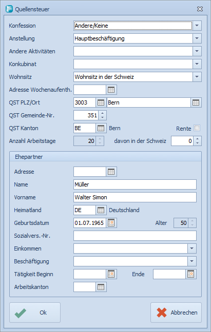 Um die Quellensteuer elektronisch zu übermitteln, sind für quellensteuerpflichtige Mitarbeiter zusätzliche Informationen zu definieren.
