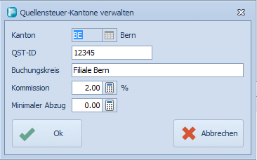 Mit der neuen Hilfstabelle «Quellensteuer-Kantone» können pro Kanton die Quellensteuer-ID und die Kommission verwaltet werden. Diese werden bei der Erstellung der Quellensteuerabrechnung mitberücksichtigt.