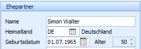 Beim erfassten Ehepartner wird der Name und Vorname getrennt (1. Wort = Nachname, Rest = Vorname)