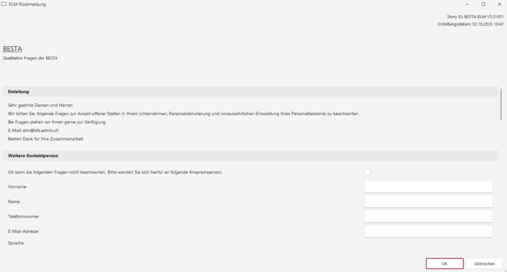 Wird via ELM die monatliche Statistik übermittelt, kann das BFS quartalsweise über die Dialog-Message noch die Zusatzfragen für die Beschäftigungsstatistik abfragen.