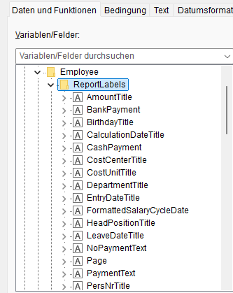 Folgende Personalinformationen können im Info-Bereich via List&Label ergänzt werden: