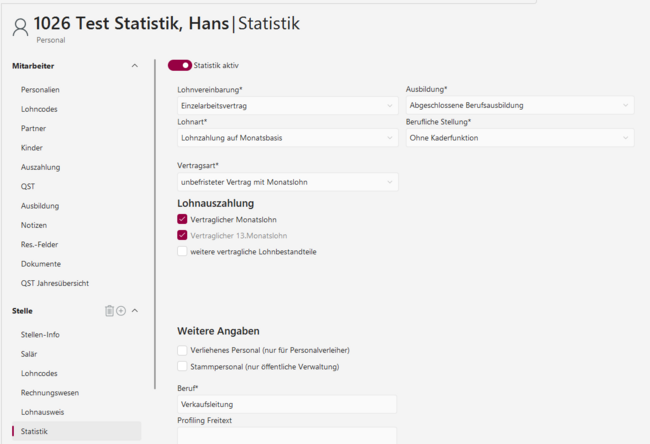 Neuer Mitarbeiter ab Vorlageperson: Statistikdaten werden übernommen Wird ein neuer Mitarbeiter aufgrund eines Vorgabemitarbeiters erstellt, werden neu auch die Statistikwerte des Vorgabemitarbeiters übernommen.