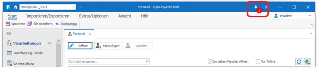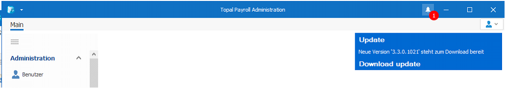 Sobald im Topal Payroll ein neuer Release (neue Version oder ein Hotfix) zur Verfügung steht, zeigen wir dies Ihnen im Payroll sowie auch im Admin UI entsprechend mit einer Glocke an.