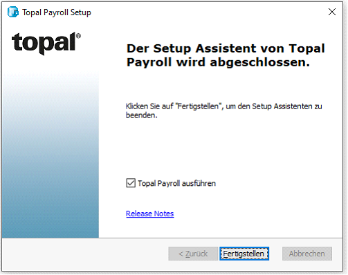 Nach der Installation des Updates können Sie Topal Payroll direkt wieder starten, ohne den Computer neu zu starten: