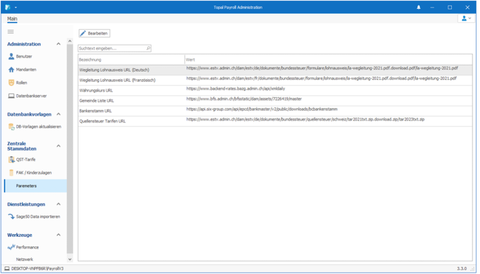 Hinterlegte Links im Topal Payroll sind neu flexibel im AdminUI hinterlegt und anpassbar. Somit muss, wenn ein Pfad eines Anbieters geƤndert wurde, nicht mehr ein Hotfix erstellt werden, sondern man kann den Pfad direkt im AdminUI anpassen: