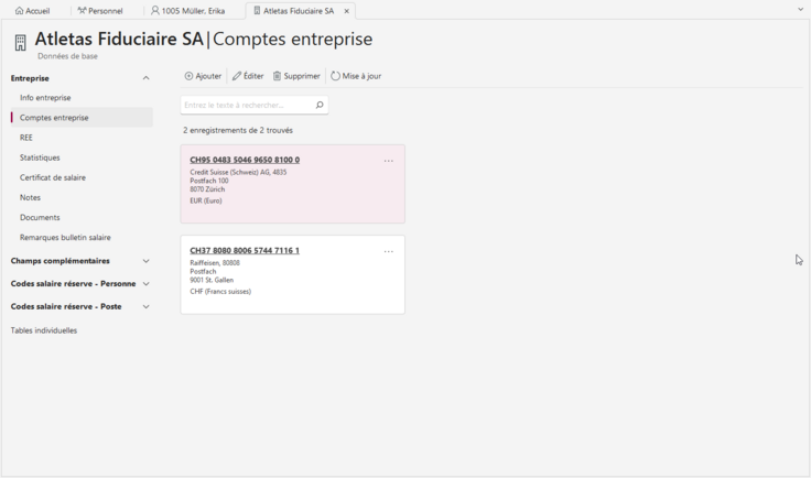 Entreprise - Comptes bancaires