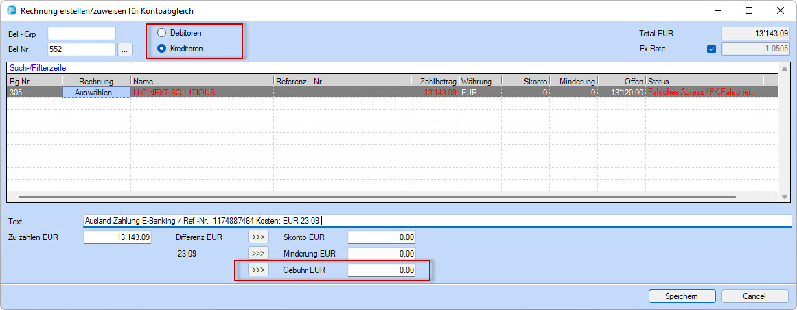 Auswahl von Debitoren/Kreditoren Rechnungen